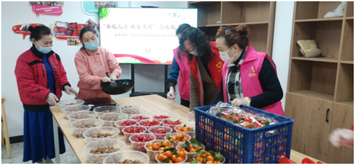 做后勤服务的“保障员”。“我们深知防疫一线的工作者是最辛苦最危险的,所以这次特意准备了几个不同品种的小点心,方便入口也容易饱腹,希望能帮到防疫人员。”钟楼区“春暖花开?银发生辉”团队的志愿者们精心准备了茶叶蛋、水果和点心,一一分装整合后送到各个防疫点;武进雅韵艺术团党支部书记孙英在了解到一线采样工作人员压力大、任务重,连饭都顾不上吃时,立刻召集艺术团的部分团员,包了一千多只馄饨,装盒送到采样工作现场,为一线的工作人员送上了一份“暖心晚餐”;经开区老同志章怀祖每天早上6:30分就到达核酸检测场地,帮助搬运医疗物资、搭建帐篷;五星街道勤二社区的“银发互助社”,招募60—65岁社区老党员为志愿者,以“小老人”帮“老老人”“一对一、一对多、多对一、多对多”等结对形式开展无偿服务,定期走访并照顾辖区70周岁以上的高龄空巢老人,为老年居民解决实际困难,为社区抗疫解决后顾之忧。