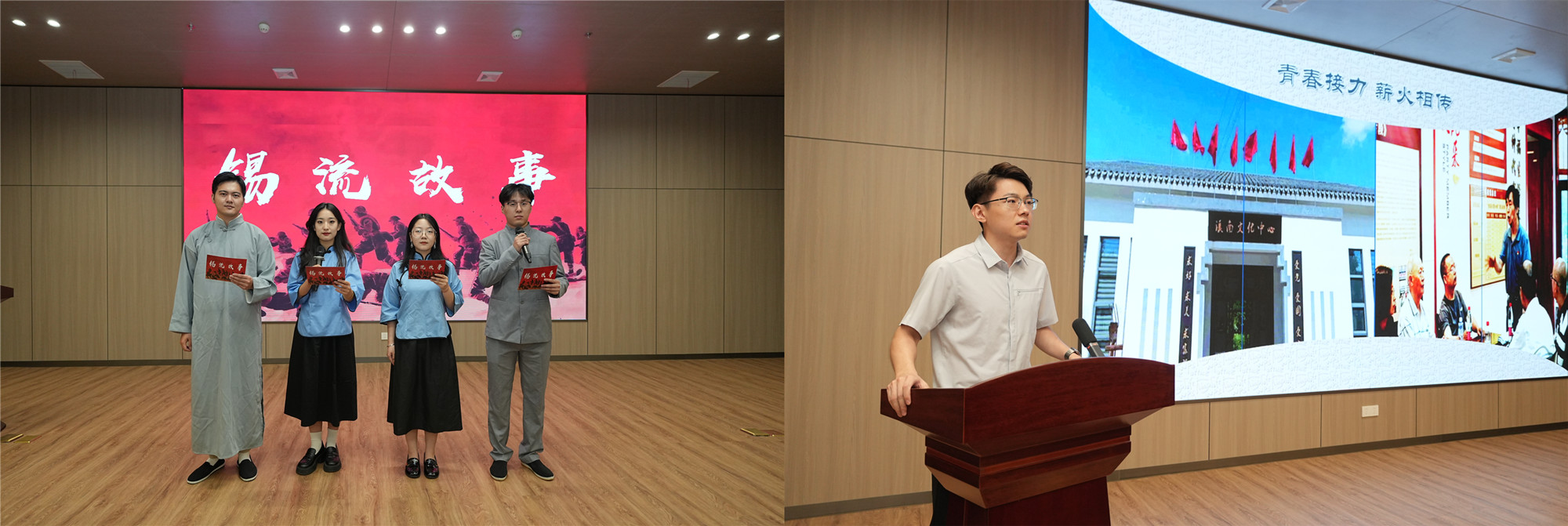 “青春接力”篇章中,年轻干部深情演绎情景剧《锡流故事》,再现了“一次小小的长征”中爱国青年的豪情壮志;一首诗朗诵《强军梦 我的梦》抒发了热血青年建功新时代的铮铮誓言;钱桥街道年轻干部的青春感言“‘青春接力’不是一句口号,而是一份承诺和责任”,表达了在场所有年轻同志继承传统、奋发有为的共同心声。