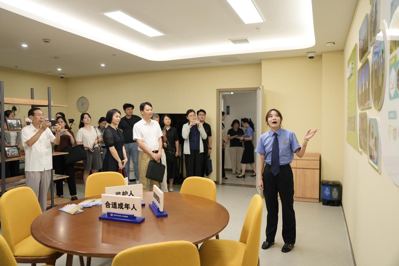活动首先参观了区检察院党建阵地和“向阳花”老党员工作室。检察院离退休干部党支部是第一批省“六好”支部,阵地和老党员工作室建设特色鲜明、亮点突出。大家参观了政治引领、组织建设、学习教育、廉政建设、优秀典型、老党员之家、“向阳花”工作室等区域板块,每个区域板块均彰显了检察院弘扬精神、尊崇法律、公平公正、廉洁清正、科学严谨的气韵。大家边听讲解,边咨询讨论,现场研学氛围浓厚。当参观到“向阳花”工作室区域时,检察院老党员凭借法律专业优势,热心开展法律服务,积极保护青少年心理健康,预防未成年人违法犯罪的相关做法得到大家一致称赞。“向阳花”工作室结合学生寒暑假、开学季、6.1儿童节、12.4宪法日等时间节点,开展“法治进校园”系列活动,老党员们为预防青少年违法犯罪,指导年轻干警定期对网吧、KTV以及剧本杀、私人影院等新业态场所走访调查,引导经营者合法合规经营,为青少年健康成长营造良好环境。工作室还联合梅园新村街道举办“检察官服务日”活动,为群众宣传法律知识,向群众解答法律问题,助力社区建设和谐平安家园,受到社区欢迎和群众好评。