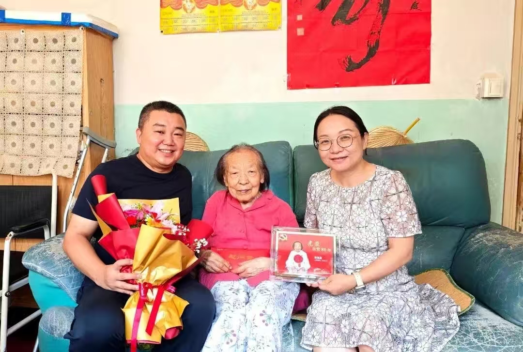 在中国人民抗日战争暨世界反法西斯战争胜利80周年之际,十四所党委书记、中电国睿党委副书记郭际航,十四所、中电国睿纪委书记颜晓玲代表党委、领导班子,走访慰问抗战老战士赵建友和抗战老同志朱悦真,并发放“中国人民抗日战争胜利80周年”纪念章,向他们致以崇高敬意与诚挚问候。十四所、中电国睿人力资源部、离退休办公室,抗战老战士、老同志所在社区领导参加此次走访慰问活动。