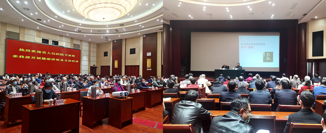 12月2日,省委宣传部办公楼五楼多功能厅却座无虚席,一片暖春景象。省人民医院专家组一行7人专程到省委宣传部机关为离退休老同志开展冬季养生讲座和义诊活动,这既是省委宣传部对老同志身心健康关爱的具体举措,也是部院双方开展党建共建深入推进的又一生动实践。二级巡视员、机关党委专职副书记、机关纪委书记刘海泉主持相关活动,机关部分老同志及家属和在职干部近100人参加。