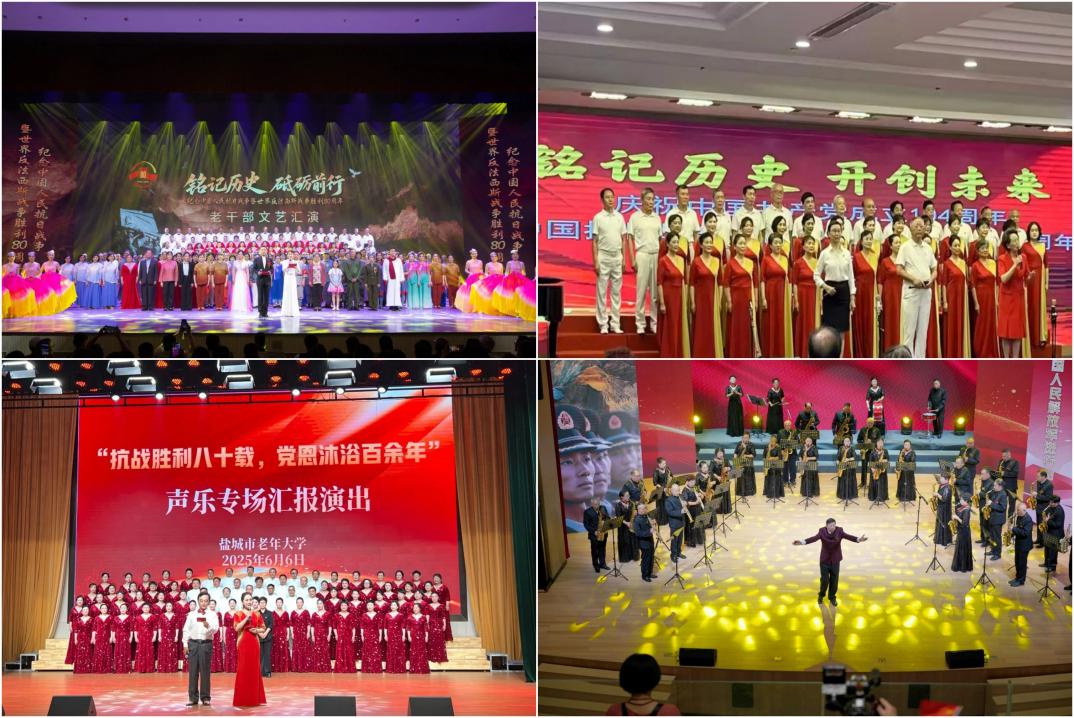 紧扣纪念抗战胜利主题,全省广大老干部纷纷将伟大抗战精神融入艺术创作,以音乐、舞蹈、情境表演、朗诵等艺术形式,奏响党领导中华民族抗击侵略、共御外侮的英雄凯歌,从伟大抗战精神中汲取继续前进的智慧和力量。省委老干部局和南京市共同举办“铭记历史,砥砺前行”老干部文艺汇演,追忆中国人民不屈不挠、抗击侵略的光辉历史,抒发老同志对革命先烈的深切缅怀和崇高敬意,表达铭记历史、缅怀先烈、珍爱和平、开创未来的决心信心。苏州市与上海市联合举办“铭记历史,开创未来”老干部主题歌会,以饱满的热情与激昂的歌声,深切缅怀抗战英烈的伟大牺牲,共同抒发对伟大时代的无限热爱与自豪,充分展现了新时代老干部不忘初心、永葆政治本色的精神风貌和昂扬向上的时代风采。盐城市举办“抗战胜利八十载,党恩沐浴百余年”声乐专场汇报演出,从激昂旋律中汲取奋进力量,精心绘就了一幅传承抗战精神、抒发爱党爱国热情、展现新时代老干部精神风貌的壮美画卷。镇江市举办“军号,英雄,丰碑”老干部文艺汇演,通过史志专家讲述、情境歌舞表演、情景诵读诗篇、独唱重唱合唱等多种艺术表现形式,重述那段波澜壮阔、血与火交织的历史,深情告慰镇江抗战先烈的不朽英灵,真情传颂中华民族英勇斗争的事迹。苏州大学举办“烽火岁月里的青春答卷——曹积盛抗战历程沉浸式话剧党课”主题活动,创新结合话剧表演、人物访谈、实践汇报等形式,通过“科技+艺术+实践”沉浸式话剧党课讲述抗战老兵曹积盛的生平,实现历史与现实的深度对话,让红色基因融入青春血脉。