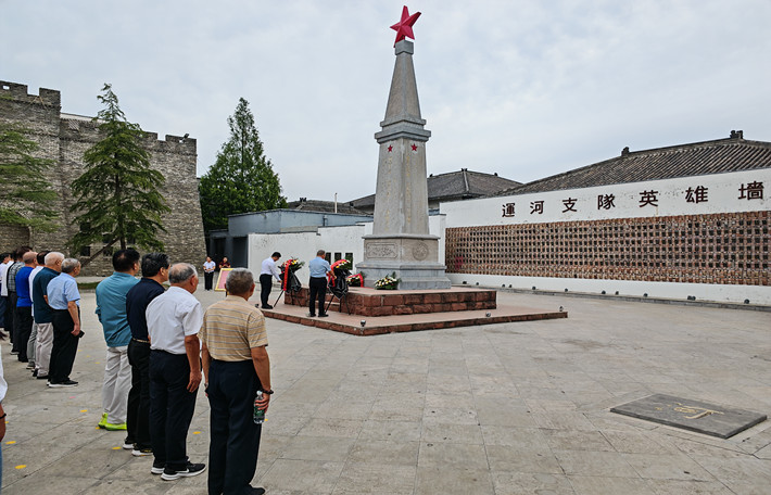 此次培训班除了专题教学,还有现场教学环节,组织离退休干部党支部书记、联络员和党务干部到运河支队抗日纪念馆开展现场教学。运河支队抗日纪念馆是全面反映苏鲁边界运河支队八年抗战史实的大型专题纪念馆,通过历史文物、照片、雕塑及场景还原等手段,系统展示运河支队抗战史实。恰逢中国人民抗日战争暨世界反法西斯战争胜利80周年之际,在庄严的运河支队抗日烈士纪念碑前,全体学员肃立默哀,向烈士们三鞠躬,敬献花篮,离退休干部党支部书记代表和在职联络员党务干部代表共同上前整理花篮缎带,老少共同追怀先烈,赓续精神血脉。