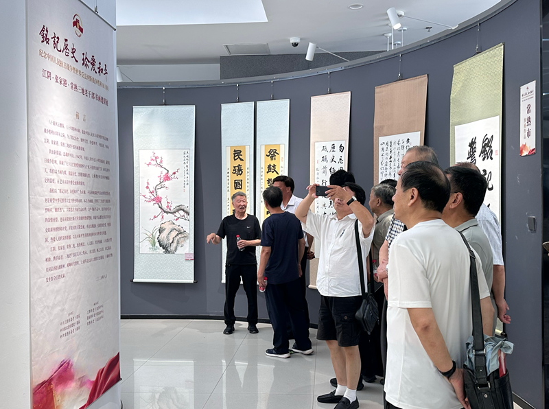 展览现场,墨韵飘香,丹青亮彩。参加活动的老同志们边观展边深情回顾抗战历程,大家在笔墨点画中感受历史的温度,礼赞抗日战争的伟大胜利,凝聚起铭记历史、缅怀先烈、珍爱和平、开创未来的思想共识。