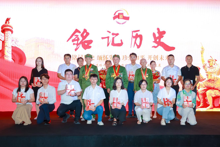 开幕式上,全体与会人员共同观看了《苏州抗战老兵口述史》专题片,深切缅怀革命先烈,致敬抗战英雄。活动现场,青年干部代表向抗战老兵献上鲜花,表达崇高敬意;老兵代表则向青年回赠《苏州抗战老兵口述史》书籍,完成了一场跨越时空的“银青对话”,实现红色基因与抗战精神的代际传承。